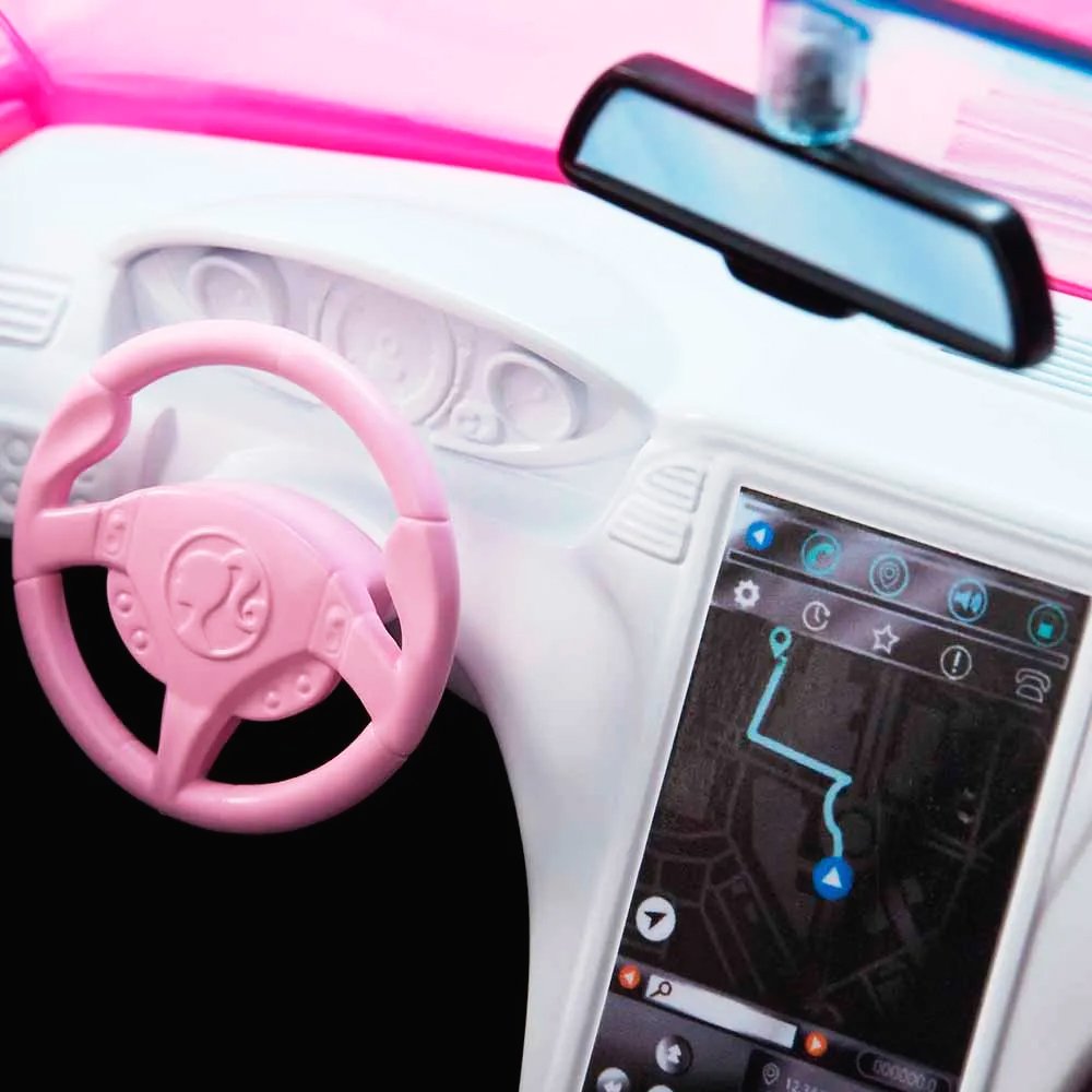 ¡Con un vehículo Barbie convertible rosa, la imaginación puede salir a la carretera y embarcarse en un sinfín de aventuras! Este elegante automóvil abierto inspira todo tipo de narrativas con un diseño elegante y acabados modernos. El convertible presenta una forma deportiva, detalles realistas y el estilo característico de Barbie, como un letrero personalizado y un adorno en forma de sudadera con capucha con la silueta de Barbie. Con ruedas giratorias y espacio para dos personas, ¡los niños pueden poner sus muñecas Barbie y dar un empujón para que comience la historia!