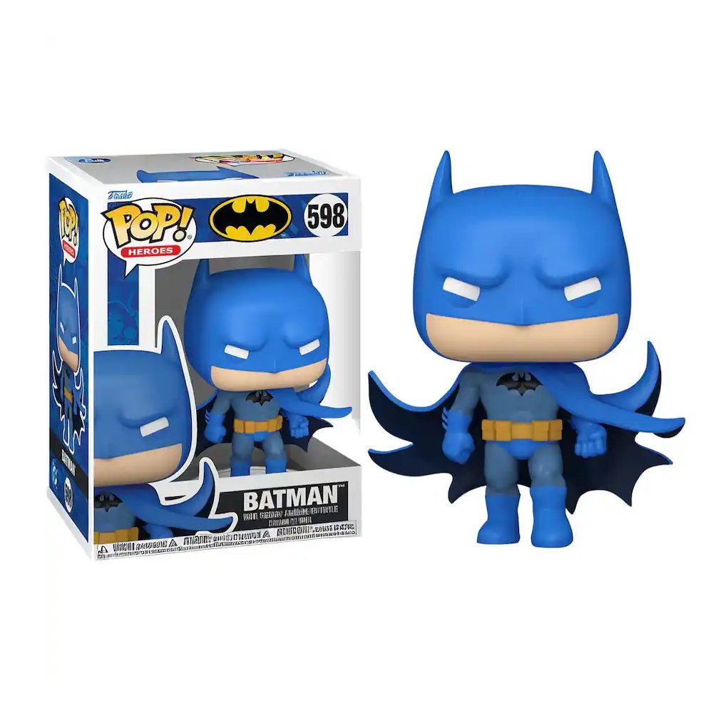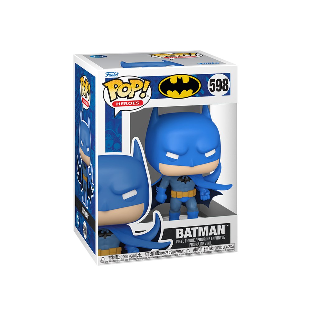 Agrega a tu colección al icónico Caballero de la Noche con este Funko Pop! de Batman. La figura presenta el clásico traje azul con capa en movimiento y expresión seria, capturando el estilo emblemático del héroe de DC Comics.