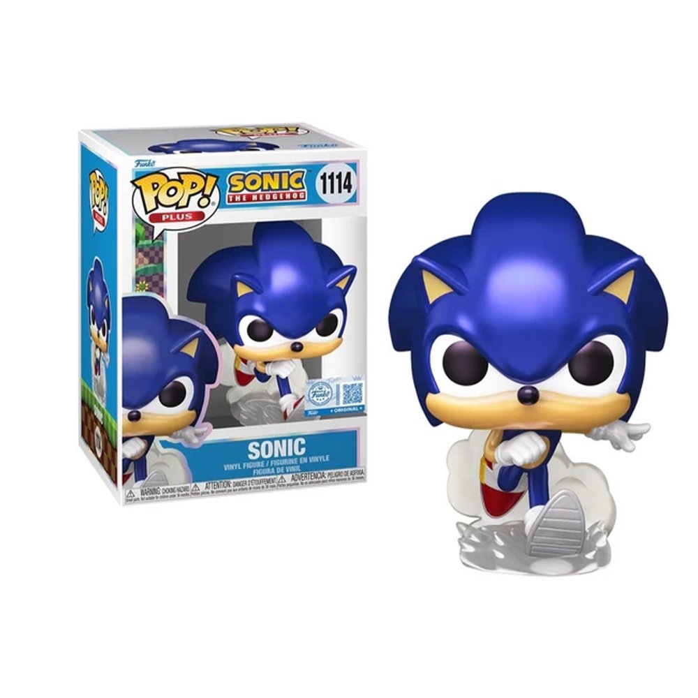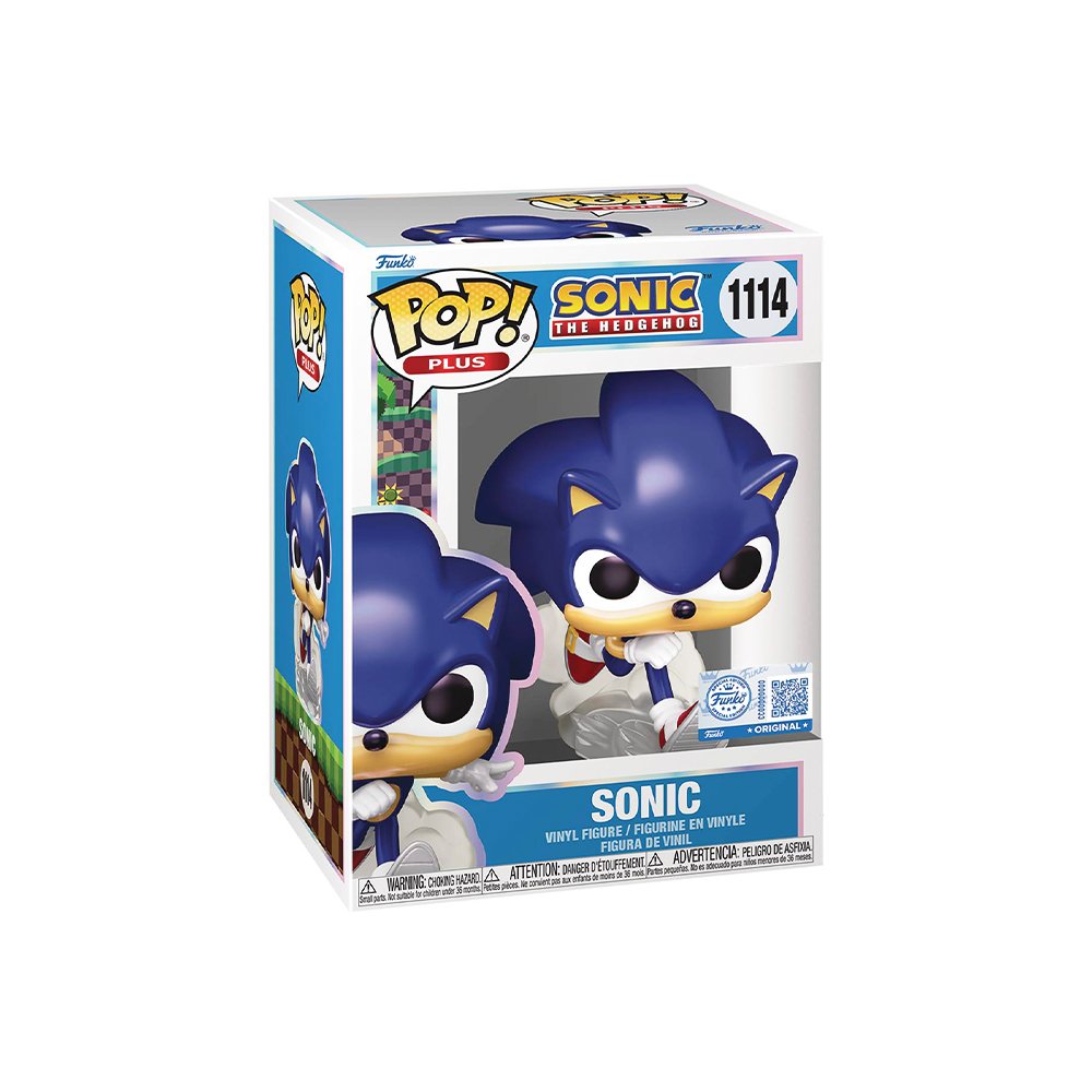Figura Funko Pop! Plus de Sonic the Hedgehog, número 1114, original y con licencia oficial. Presenta a Sonic en pose de carrera con detalles especiales de movimiento, propia de la línea Pop! Plus, que ofrece mayor tamaño y mejor acabado que los Funko estándar.