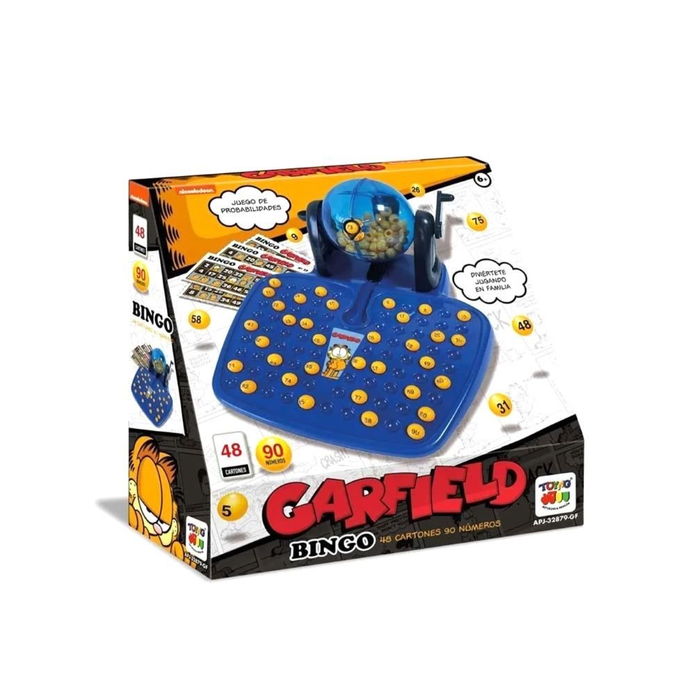 El Juego Familiar Garfield Bingo es una versión temática del clásico bingo, ideal para todas las edades, que presenta a los personajes y elementos de Garfield, donde los jugadores marcan imágenes o números en sus cartones basados en las cartas que se sacan, buscando completar una línea (horizontal, vertical o diagonal) para ganar gritando «¡Bingo!»