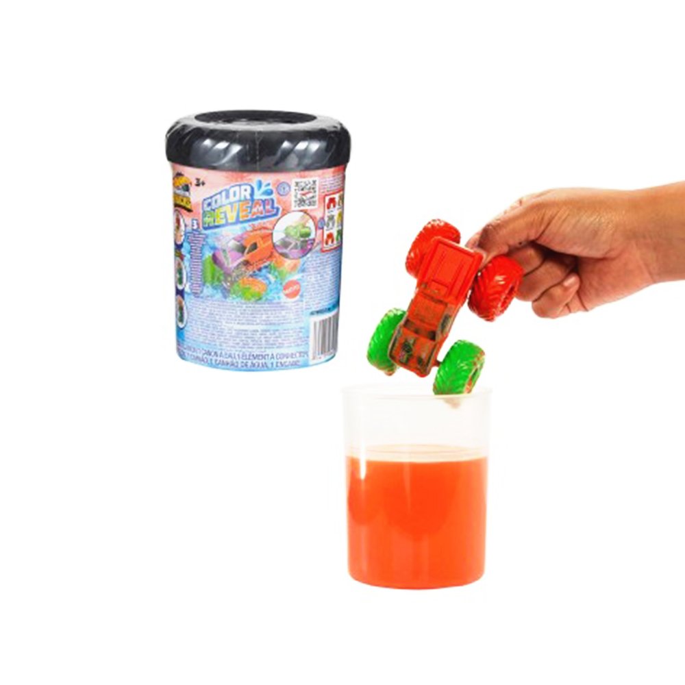 ¡La emoción del Monster Truck con una gran sorpresa! Los Hot Wheels Monster Trucks Color Reveal ofrecen una experiencia divertida e interactiva: descubre el diseño oculto del vehículo al contacto con el agua.
